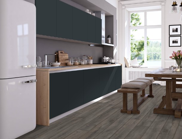 Blacksmith Oak replicates the beauty of a sophisticated yet rustic European wide-plank white oak floor. It has a luxurious grain pattern and beautiful color play from board to board. Blacksmith Oak is reminiscent of traditional Chateau flooring with true realism, deep rich colors, and an 8” width.